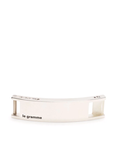 Silver sterling silver assemblage bracelet exchange tp from Le Gramme featuring an engraved logo and a polished finish.