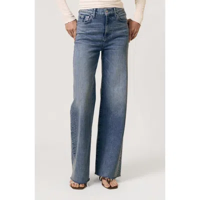 LE JEAN Embellished Frayed High Waist Column Jeans In Blue