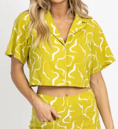 LE LIS Linen Abstract Open-back Top In Lime In Green