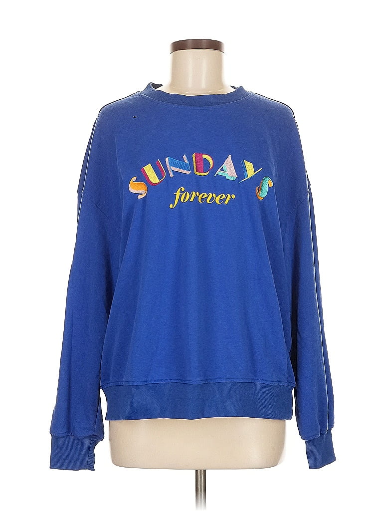 Le Lis Pullover Sweater, Size: Medium. Item Details: Blue, Crew Neck, Long Sleeve, Women's Tops, Cotton/Polyester/Cotton