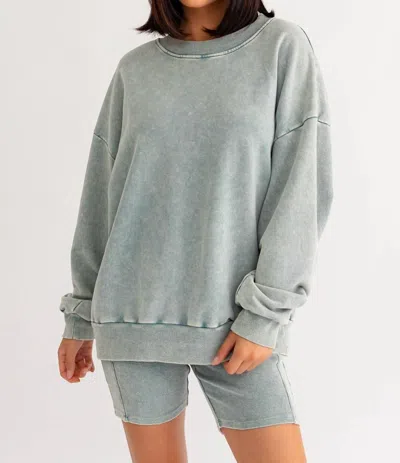 LE LIS Washed Oversized Pullover Sweater In Sage In Multi