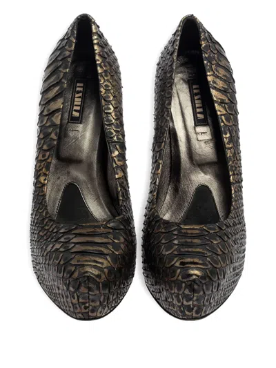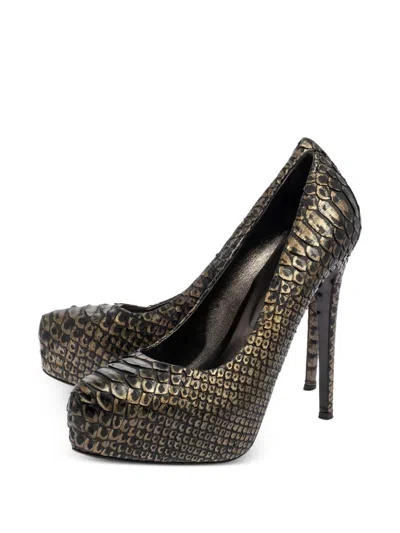 Pre-owned 135mm Python Platform Pumps In Black