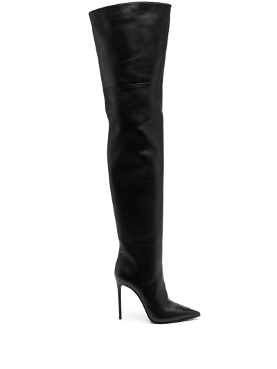 Eva thigh-high boots from LE SILLA featuring black, nappa leather, calf leather, pointed toe, stiletto heel, thigh-high and pull-on style.