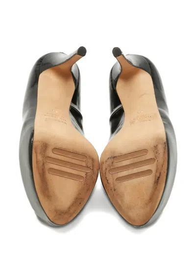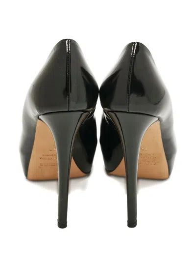 black patent leather stiletto heel peep toe leather sole Condition: GOOD. This previously owned and used item is in good condition with minimal signs of use. This may include fading of material or plating and scratches.
