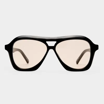 Inspired by millennial pop culture, our DRIZZLE sunglasses are the latest take on the classic aviator silhouette. Featuring a three-dimensional beveled profile, this midsize frame offers flattering unisex proportions and is detailed with our understated pyramid stud hardware on both temples. • Finished in a black frame with light tan tint lenses. • A lightweight, durable and impact resistant polycarbonate frame. • Fitted with shatterproof and scratch resistant polycarbonate lenses.