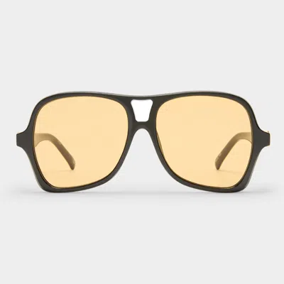 Embrace vintage appeal with our FORTUNE TELLER aviator sunglasses. Featuring a 70s-inspired silhouette and unique contours, these oversized sunglasses offer a flattering unisex fit. With bold frame detailing and refined metal accents, they deliver a striking yet effortless look. • Finished in a black frame with mustard mono lenses. • Made using BPA free polymer plastic which is lightweight, durable and impact resistant. • Fitted with shatterproof and scratch resistant polycarbonate lenses.