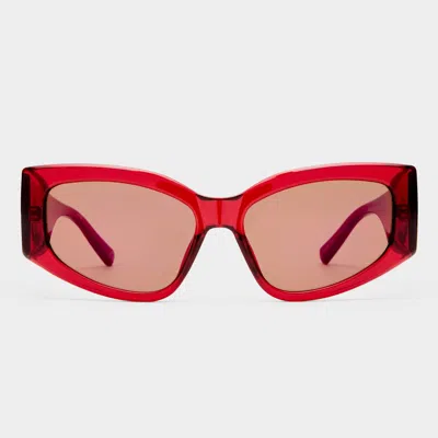 Bold and seductive, our THE HAUNTING sunglasses provide a striking everyday look for all face shapes. This oversized cat-eye style features a thick temples, sculpted frame with a contemporary flat profile, complemented by luxurious heritage flagstripe metal hardware to both temples. • Finished in a cherry lacquer frame with cocoa mirrored lenses. • A lightweight, durable and impact resistant polycarbonate frame. • Fitted with shatterproof and scratch resistant polycarbonate lenses.