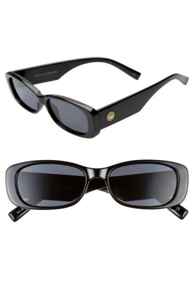 LE SPECS Unreal 52mm Rectangular Sunglasses In Shiny Black/smoke