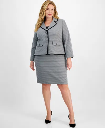 LE SUIT Plus Size Printed Three-button Skirt Suit Set In Grey Multi