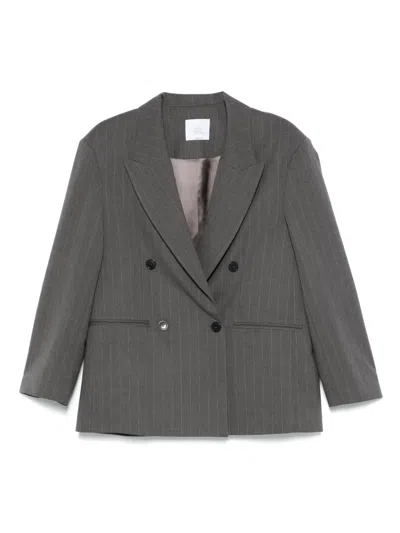 medium grey double-breasted button fastening two side welt pockets buttoned-cuff sleeves peak lapels. Colour. : Gray. Composition. : Outer Composition Polyester: 70.0%, Outer Composition Viscose: 28.0%, Lining Composition Viscose: 100.0%, Outer Composition Elastane: 2.0%. Country Of Manufacture. : Italy. MPN. : 6282ANTONELLA802. Size Family. : IT. .