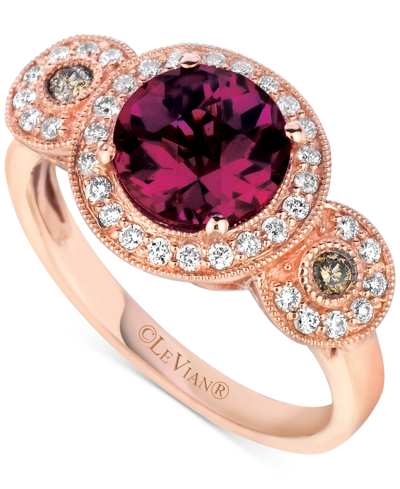 LE VIAN Raspberry Rhodolite (2-1/5 Ct. T.w.) & Diamond (1/3 Ct. T.w.) Triple Halo Ring In 14k Rose Gold