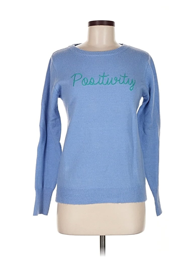 Lea & Viola Pullover Sweater, Size: Medium. Item Details: Blue, Crew Neck, Long Sleeve, Embroidered, Women's Tops, Acrylic/Polyester