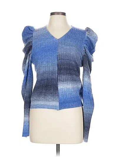 Lea & Viola Pullover Sweater, Size: Large. Item Details: Blue, Ruffles Neckline, Long Sleeve, Women's Tops, Polyester/Nylon/Acrylic