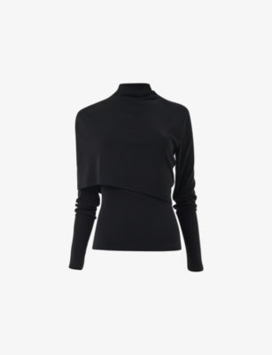 LEEM Womens Black High-neck Draped Stretch-woven Top