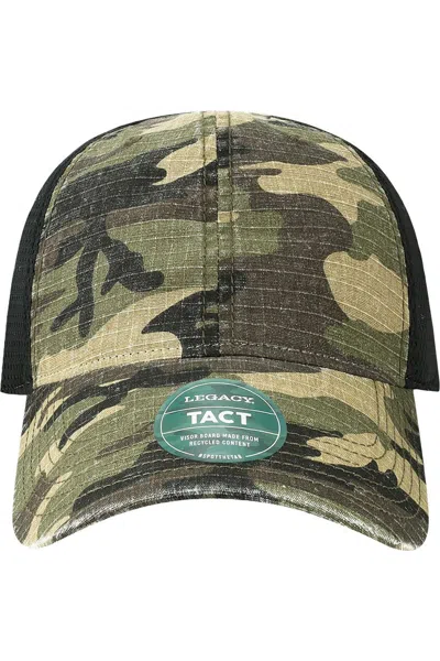 100% ripstop cotton. Mesh back is 65/35 ripstop cotton/polyester. Unstructured, six-panel, low-profile. Slightly curved recycled visor board. Moisture-management sweatband. Tactical no top button. Legacy woven label on right side. Elasticized with D-ring loop, hook-and-loop closure.