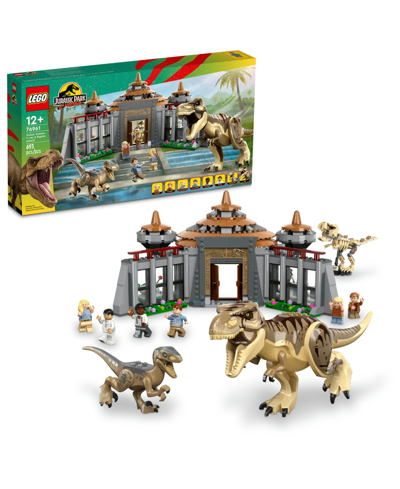 Explore the amazing Jurassic Park Visitor Center Check out the T.Rex skeleton displayed in the entrance hall. Meet Dr. Henry Wu and Ray Arnold to perform tests and check on the dinosaur eggs in the incubator. Take a break for a meal in the kitchen with Dr. Ellie Sattler, Dr. Alan Grant and Tim and Lex Murphy. But watch out here comes a huge T.Rex and Velociraptor to cause total chaos.