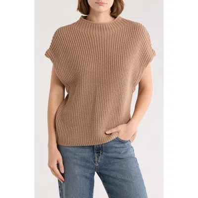 LEITH Mock Neck Cap Sleeve Cotton Blend Sweater In Brown