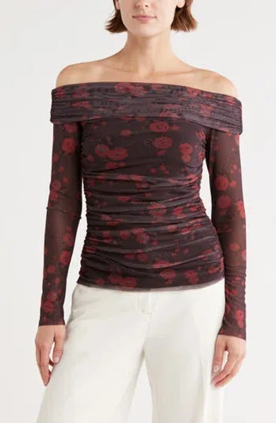 LEITH Off The Shoulder Mesh Knit Top In Multi