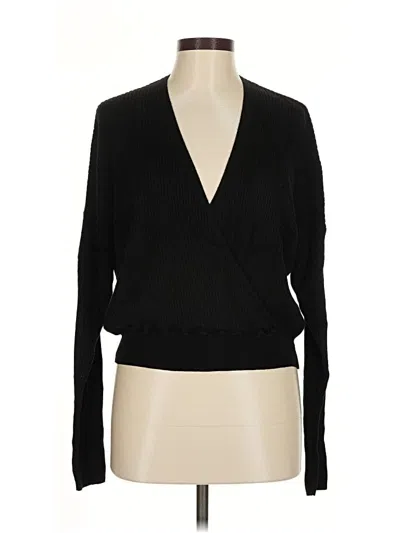 Leith Pullover Sweater, Size: Medium. Item Details: Black, Plunge Neckline, Long Sleeve, Women's Tops, Rayon/Nylon/Cotton