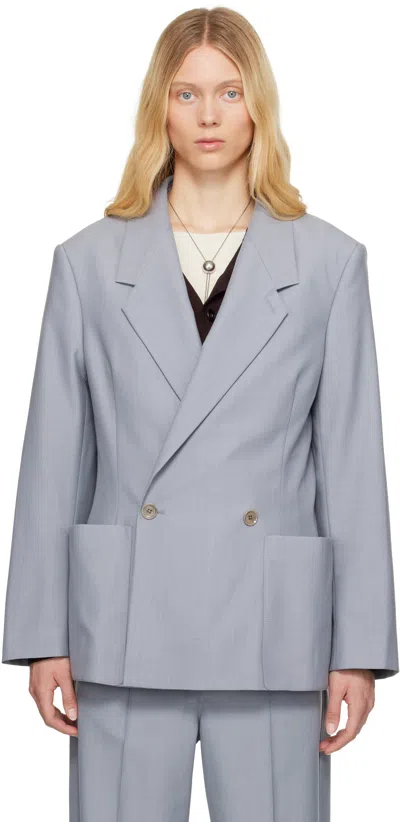 LEMAIRE Blue Double Breasted Tailored Blazer In Bl720 Blue Grey Mela
