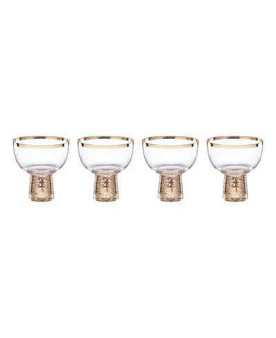 Color/Finish: Clear/Gold Design Details: When The Occasion Calls For Intrigue, These Gold Frost Coupe Glasses Make The Scene Way More Interesting. Their Pedestal-Like Stems Are Truly Elevating, Adding Height And Enhancing The Ambience With Gleaming Gold Geometric Patterns. Rely On Them To Catch The Eye...And Break The Ice Glasses Like These Always Start Conversations. Each Measures 4.25In X 3.75In. 10Oz Capacity. Capacity: 10 Oz Materials: Glass/Crystal Food Safe Hand Wash Only Imported Contents Of Set: Four Coupes