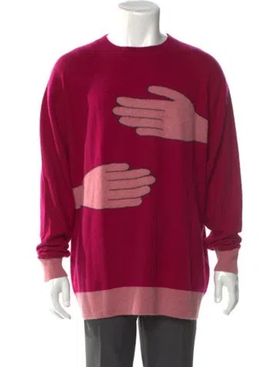 LERET LERET Cashmere Pullover Blue, Neutrals & Red Graphic Print Long Sleeve with Crew Neck Fit: Sweaters by LERET LERET typically fit true to size. | LERET LERET Cashmere Graphic Print Pullover in Blue/Neutrals/Red, Men's XL