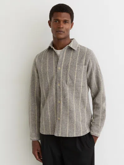 LES DEUX Grey Melange Pinstripe Overshirt With Wool In Multi
