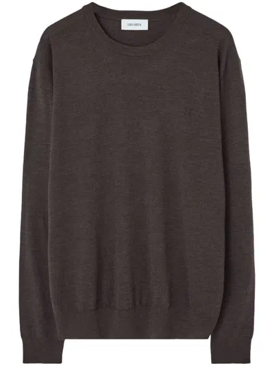 coffee brown merino wool mélange effect crew neck long sleeves embroidered logo at the chest ribbed cuffs and hem