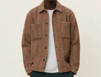 LES DEUX Milian Herringbone Overshirt -plus In Coffee Brown/dark Sand