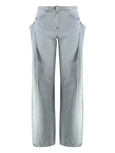 Wide-leg jeansWaist belt with buckleBack logo label100% Cotton