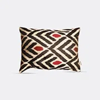 Introducing a cool opulence to spaces, Les Ottomans' collection of silk velvet cushions reflects the Italian brand's reverence for traditional pattern and technique. The surface design of this artisanal ikat cushion, appearing in multicolor shades of plum purple and fuschia pink on white, features a dynamic, tessellated pattern resembling tulips in abstracted lines. This striking interior accent can be mixed and matched with other cushions from the series for an enlivening display.