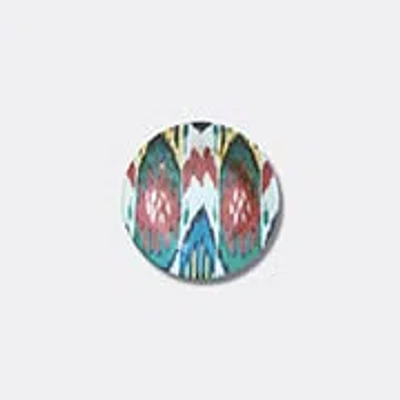 Created by Bertrando Di Renzo, the 'Les Ottomans' home collection was born from the designer's love for Turkey, brought to life via colourful digital ikat prints on ceramic plates. Despite the digital production of its surface decoration, the small 'Ikat' plate features a key characteristic of ikat textiles — a fuzziness to the design, here a yellow, green, red, black and white pattern, which can be brought back to the extreme difficulty weavers have when lining up the dyed yarns to create pattern on traditional ikat textiles. Utilised all over the world in countries and continents that include India, Central Asia, Southeast Asia, Japan, Africa and Latin America, the original technique takes on a new life when applied to this dishwasher safe ceramic plate, which may be paired with other patterns and colourways from the same collection for a kaleidoscopic table display.