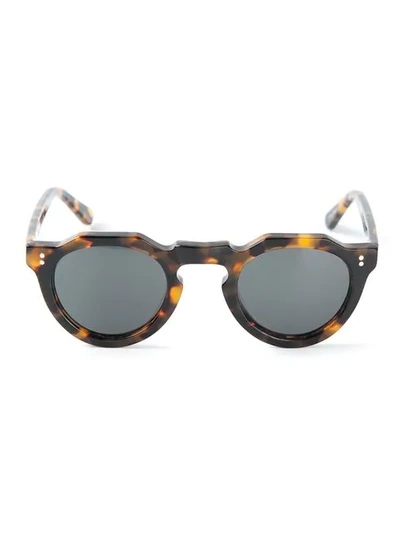 Brown round frame sunglasses from Lesca. This item comes with a protective case.