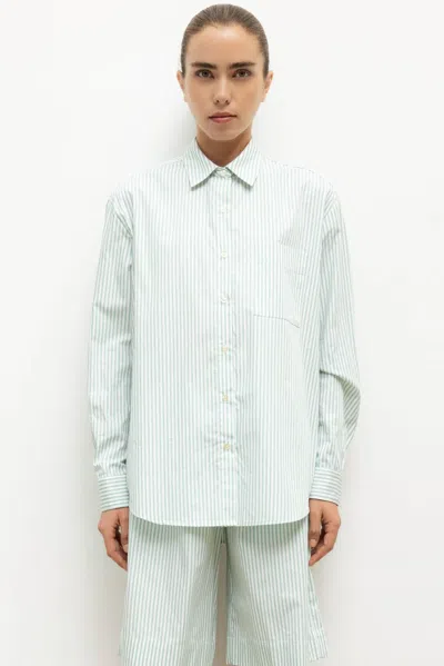 LESET Yoshi Stripe Classic Oversized Button Down In Blue