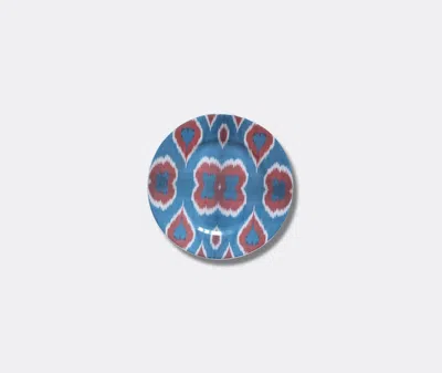Created by Bertrando Di Renzo, the 'Les Ottomans' home collection was born from the designer's love for Turkey, brought to life via colourful digital ikat prints on ceramic plates. Despite the digital production of its surface decoration, the small 'Ikat' plate features a key characteristic of ikat textiles — a fuzziness to the design, here a red, blue and white pattern, which can be brought back to the extreme difficulty weavers have when lining up the dyed yarns to create pattern on traditional ikat textiles. Utilised all over the world in countries and continents that include India, Central Asia, Southeast Asia, Japan, Africa and Latin America, the original technique takes on a new life when applied to this dishwasher safe ceramic plate, which may be paired with other patterns and colourways from the same collection for a kaleidoscopic table display.