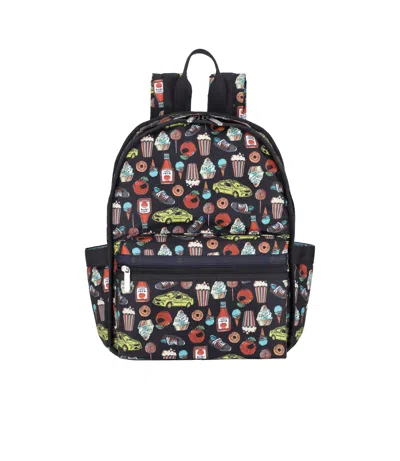 Zip main closure with dual zipper pulls, Exterior front zip closure pocket, Two exterior side open top pockets, Interior back wall open pocket, 1in/2.5cm wide pinched top handle (Drop - 3 in/7.5cm, Length - 10.43 in/26.5 cm), 1in/2.5cm wide adjustable shoulder straps (Max length - 28 in/71 cm)Dimensions - 14H x 10.8W x 3.9Din, 35.5H x 27.5W x 10D cmMade with recycled content - The ripstop body fabric used for this product is made from recycled post-industrial fibers.