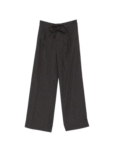 LESS Checked Drawstring Trousers In Black
