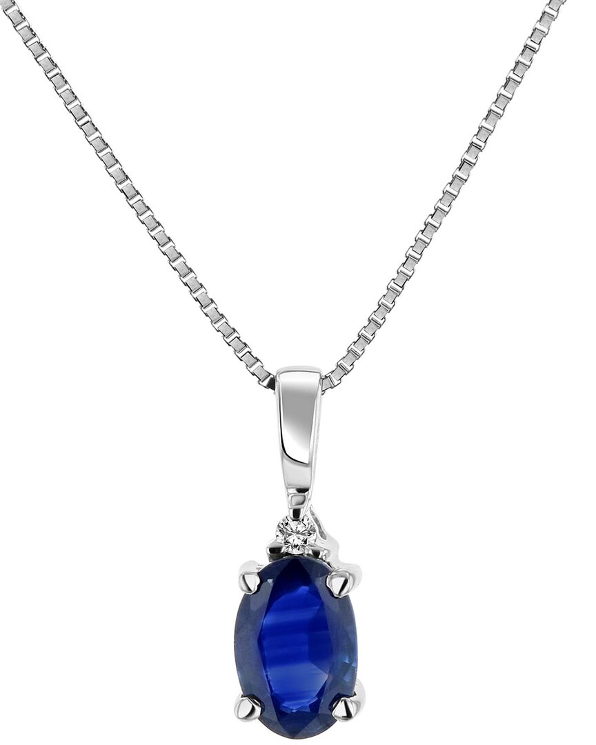 14-Karat White Gold Faceted Round-Cut Prong-Set Diamond = Approximately 0.01 Ct. Tw.; Color = H-I; Clarity = Si1-Si2 Sapphire Gemstones = Approximately 0.35 Ct. Tw. Pendant Drops Approximately 3/5In Approximately 18In Long Spring Ring Clasp Closure It Is Customary To Treat Most Gemstones To Achieve Enhanced Color And Durability. Some Of These Treatments May Not Be Permanent, And May Require Special Care. Please Note: In Product Titles Ct. Tw. Refers To The Total Carat Weight Of All Diamonds And/Or Gemstones Combined.