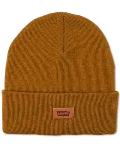 LEVI'S All Season Comfy Leather Logo Patch Hero Beanie In Tan