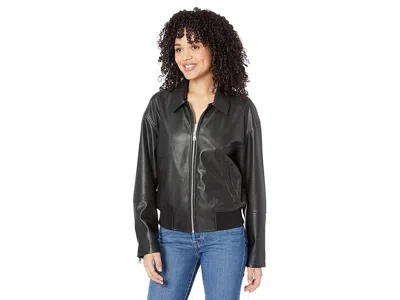 Levi's(r) Laydown Bomber - Women's Jacket : Black : ; Accentuate your street-style look gracefully wearing the Levi's Laydown Bomber jacket. ; Laydown collars and long sleeves with zippered cuffs. ; Zippered welt pockets on the front. ; Levi's signature Red Tab at lower left seam. ; Rib-knit pattern on the hemline. ; Faux leather construction. ; Zippered closure. ; 100% polyurethane. ; Machine wash, tumble dry. ; Imported. Measurements: ; Length: 22 1 2 in ; Product measurements were taken using size SM. Please note that measurements may vary by size. | Levi's(r) Laydown Bomber Women's Jacket Black : XS, Polyurethane/Faux Leather