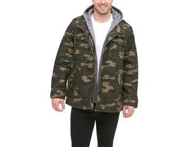 Levi's(r) Levi's Men's Washed Cotton Hooded Military Jacket - Men's Jacket : Camouflage : ; Shell: 100% Cotton; Lining: 100% Polyester ; 100% Cotton ; China ; Machine Wash ; ADDED WARMTH: The Sherpa lining adds warmth and insulation for colder weather; This adds comfort and style | Levi's(r) Levi's Men's Washed Cotton Hooded Military Jacket Men's Jacket Camouflage : MD, Cotton/Polyester