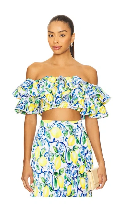 L'IDEE x REVOLVE Debut Top in Blue,Lemon. - size 8/S (also in 10/M, 12/L, 14/XL, 6/XS) L'IDEE x REVOLVE Debut Top in Blue,Lemon. - size 8/S (also in 10/M, 12/L, 14/XL, 6/XS) L'IDEE x REVOLVE. 100% polyester. Hand wash. Pull-on styling. Off-shoulder design with smocked fabric and ruffle detail. Cropped fit. Item not sold as set. LIDR-WS25. DEBUT TOP.