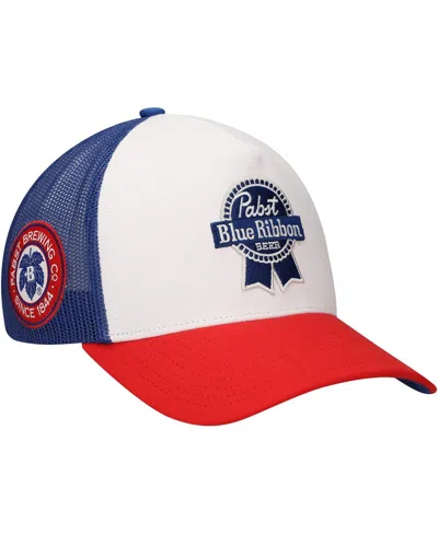 Men's White/red Pabst Blue Ribbon A-frame Trucker Adjustable Hat In White,red