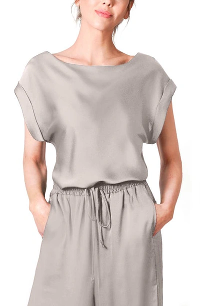 This silky, drapey pajama tunic is so lovely, you'll want to show it off thanks to its shoulder-flaunting neckline, cuffed dolman sleeves and tie hem.