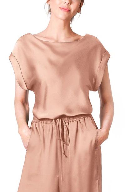 This silky, drapey pajama tunic is so lovely, you'll want to show it off thanks to its shoulder-flaunting neckline, cuffed dolman sleeves and tie hem.