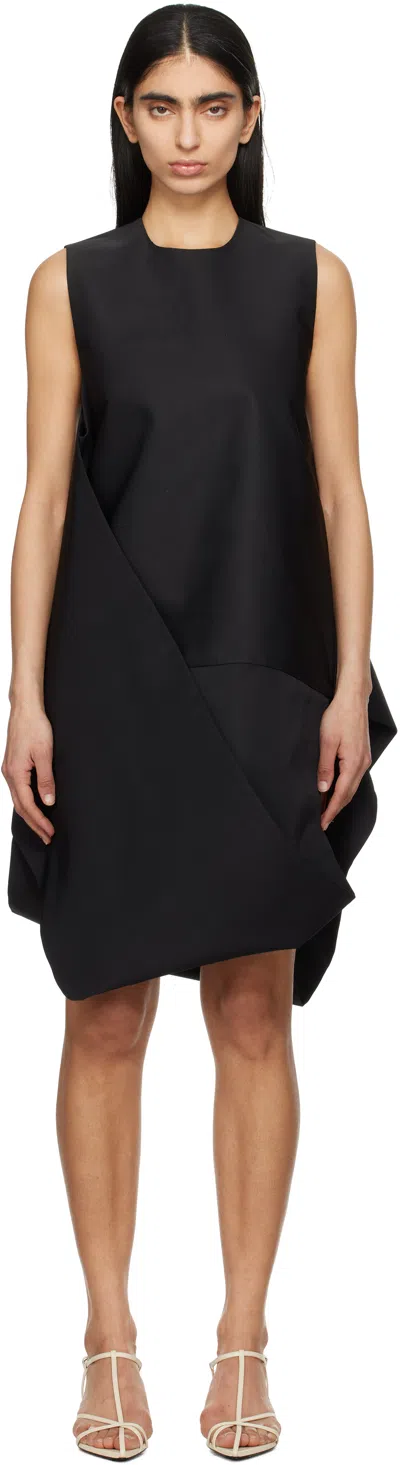 Polyester taffeta midi dress. · Layered and asymmetrical construction · Round neck · Draped panel at front and back · Zip closure at back · Full taffeta lining Supplier color: Black