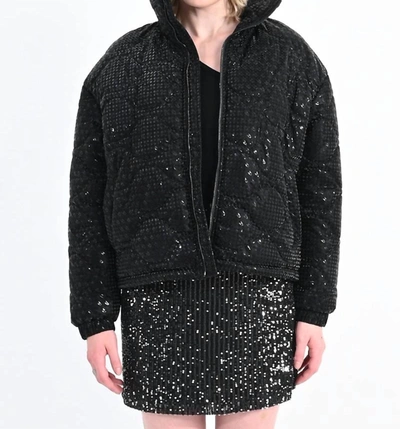 LILI SIDONIO Puffer Down Jacket With Houndstooth Pattern In Black Metallic In Multi