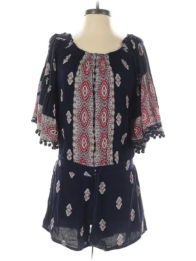 Lilka Romper, Size: X-Small. Item Details: Blue, Paisley Pattern, Crew Neck, Flared Leg, 3/4 Sleeve, Women's Dresses, 100% Polyester