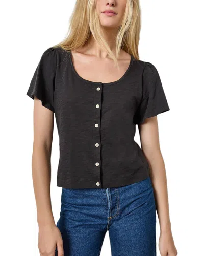 LILLA P Button Front Flutter Sleeve Shirt In Black