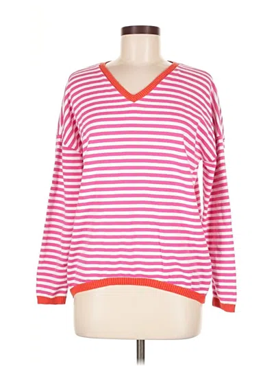 Lillusory Pullover Sweater, Size: Medium. Item Details: Red, Stripes Pattern, V Neck, Long Sleeve, Women's Tops, 100% Cotton